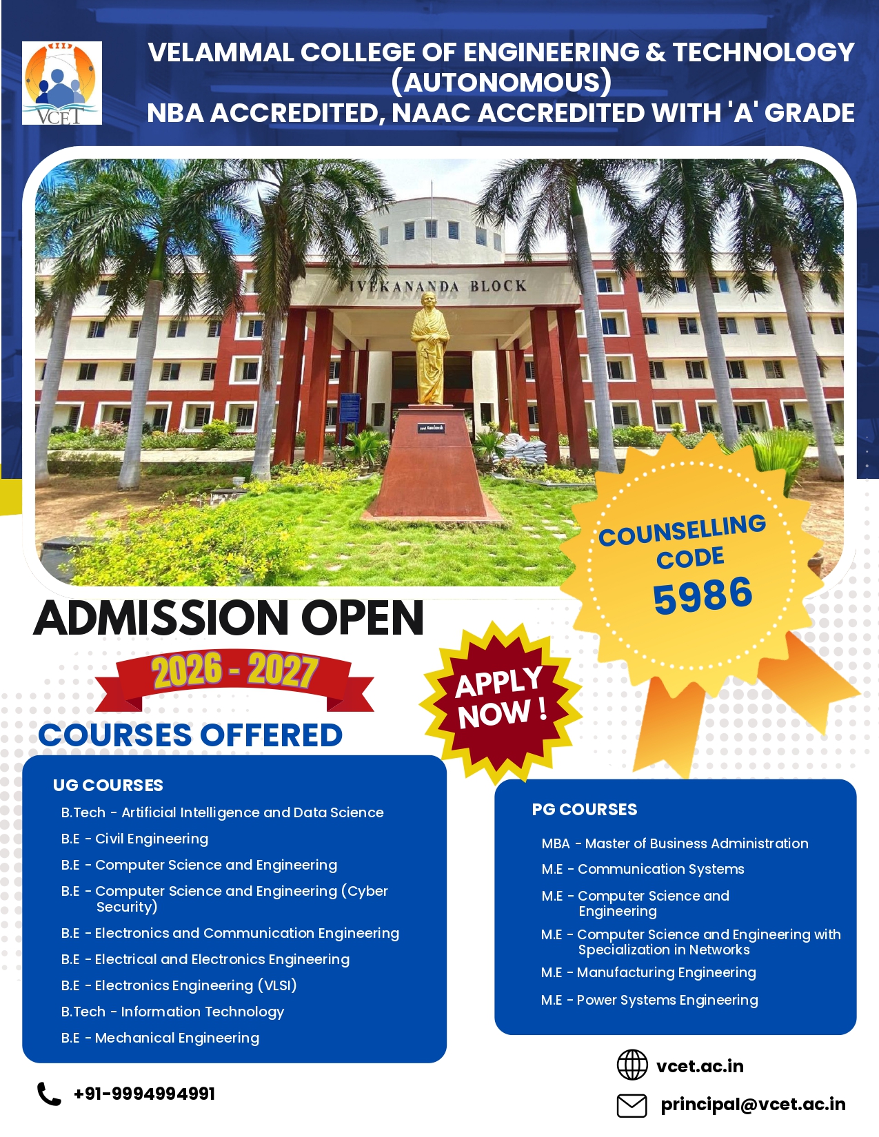 NBA Accredited, NAAC Accredited with 'A' Grade